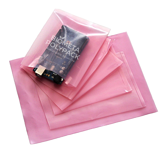 Compostable ESD-safe films and bags that dissipate static charge, protecting sensitive electronics and powders. Safe for use in pharma chain rooms and food contact